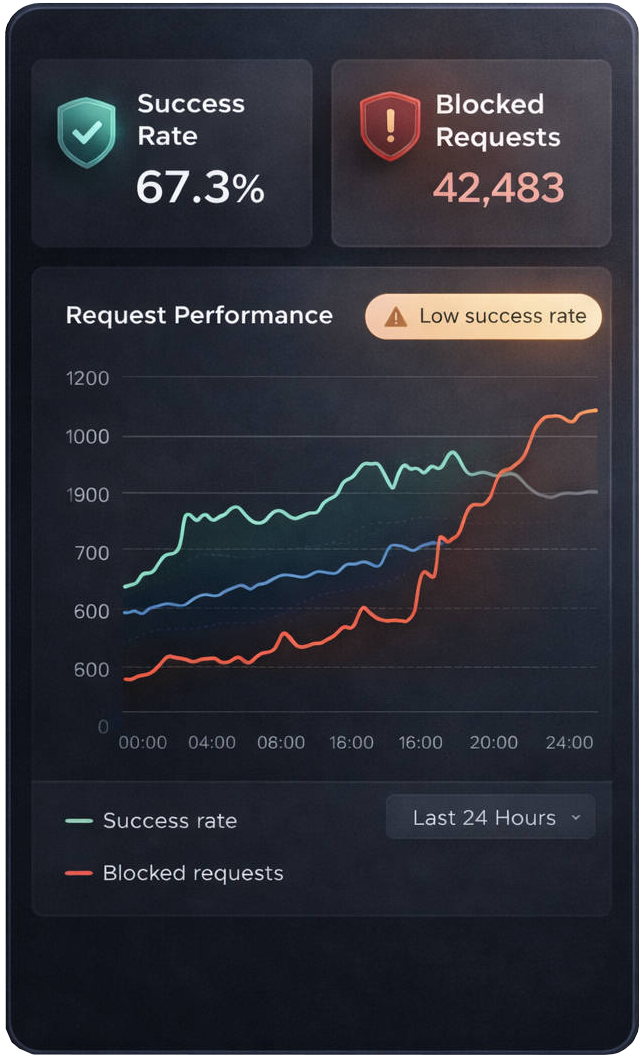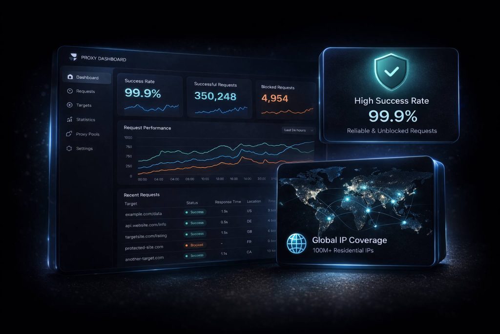 A reliable proxy network ensures stable data access, high success rates and scalable performance.